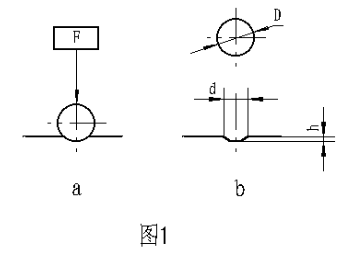 金屬布氏硬度試驗(yàn)系采用一定直徑硬質(zhì)合金球,以規(guī)定試驗(yàn)力壓入被測材料表面(圖1a)按規(guī)定保持時(shí)間后,卸除試驗(yàn)力,(圖1b)測量試樣表面的壓痕直徑,以計(jì)算出布氏硬度,并以下式計(jì)算之: